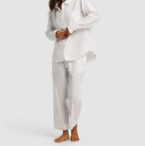 I like Cozy Earth’s all-cotton jammies better than the brand’s best-selling bamboo ones. This winter-white set can (obviously) be worn into spring and summer.
