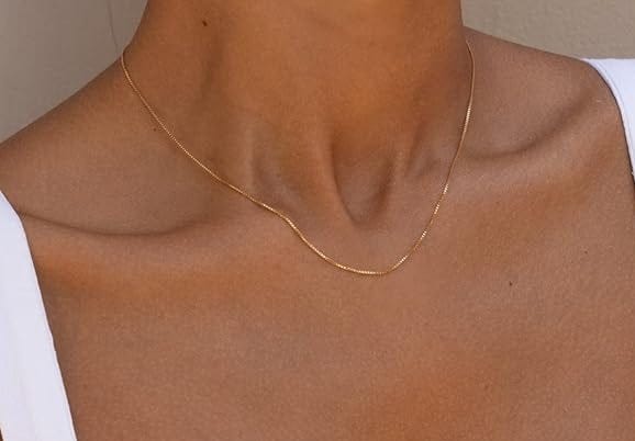 For low-key jewelry that goes with everything and doesn’t get in your way, pair the teensy chain necklace with simple gold huggies. I’m wearing this pair from Gorjana.