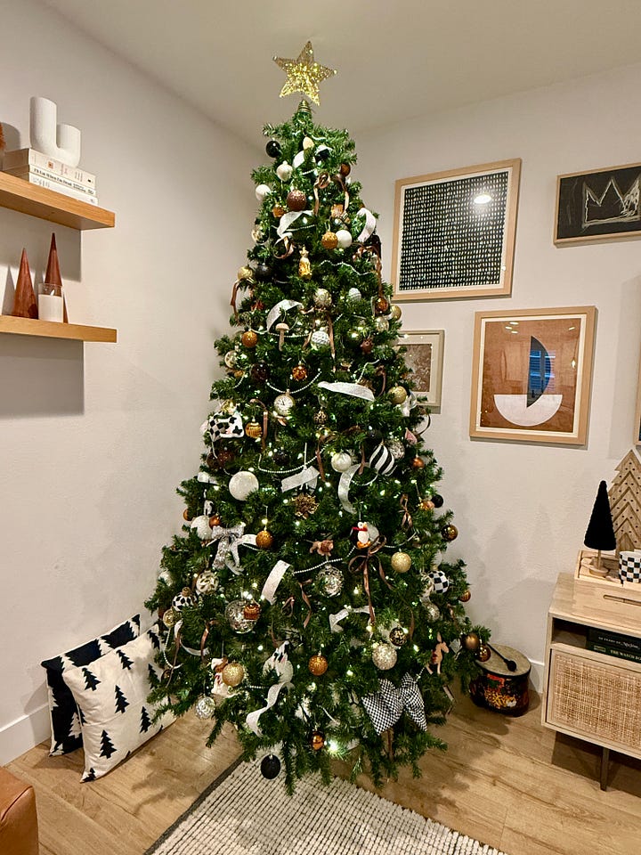 I’ve zeroed in on a tasteful, cohesive aesthetic that aligns with my everyday decor. It’s not over-the-top, and it’s not Ralph Lauren Christmas. No, it’s something else: more modern, more posh yet still classic and cozy.