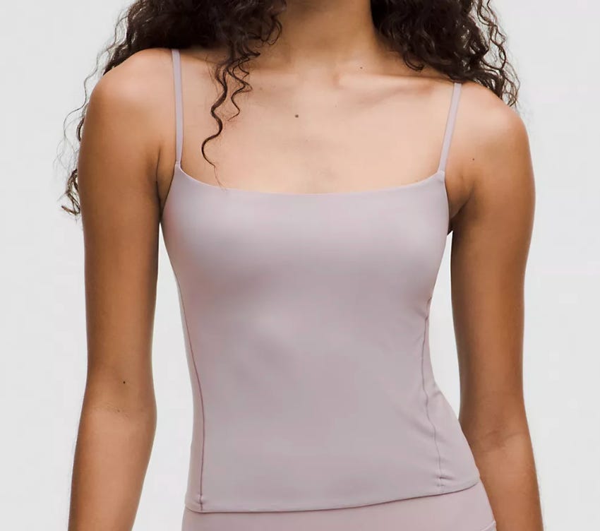 I love this Lululemon cami so damn much. It’s the delicate ‘90s-coded spaghetti straps, forgiving square neckline, and curved side seams that create the illusion of a tucked waist. I bought like six of them and wear one at least twice a week. Size up; thank me later.