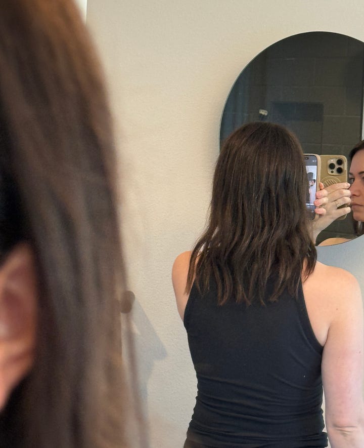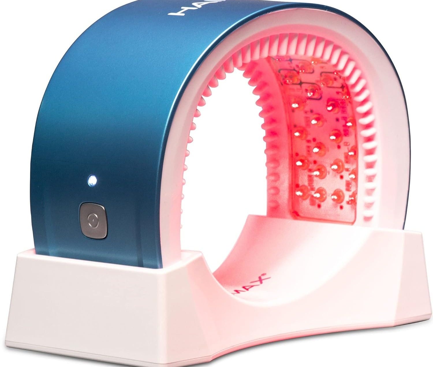 At the right wavelength and with regular use, red light therapy can support hair growth and reduce thinning. I’ve been using the Hairmax LaserBand 82 since March of last year, and my hair is totally thicker. The pieces around my face have gone from baby-hair fringe to full-length framing. It’s really expensive (sorry!😬), but the brand makes a lower-priced option that also works but calls for more minutes per treatment.